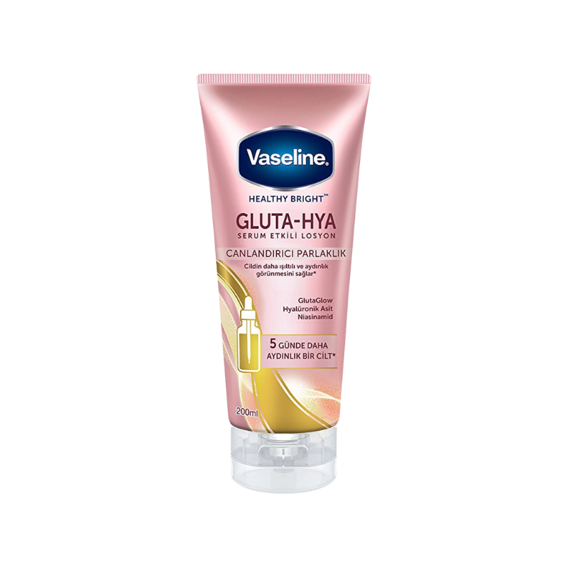 “لوشن فازلين غلوتا–هيا الوردي يمنح بشرتك تفتيحاً واضحاً، وإشراقة ندية لامعة، وترطيباً عميقاً يجعل بشرتك ناعمة ومشرقة أكثر بـ10 مرات، ليمنحك لوناً موحّداً ولمعاناً صحياً ملفتاً.”